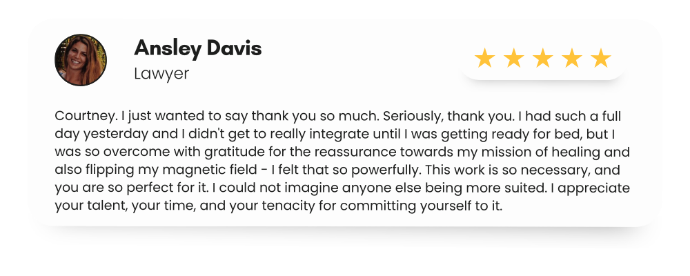 When we meet, we start by grounding into where you are right now - what feels aligned, what feels misaligned, and what questions have you been ignoring that are ready to be answered.